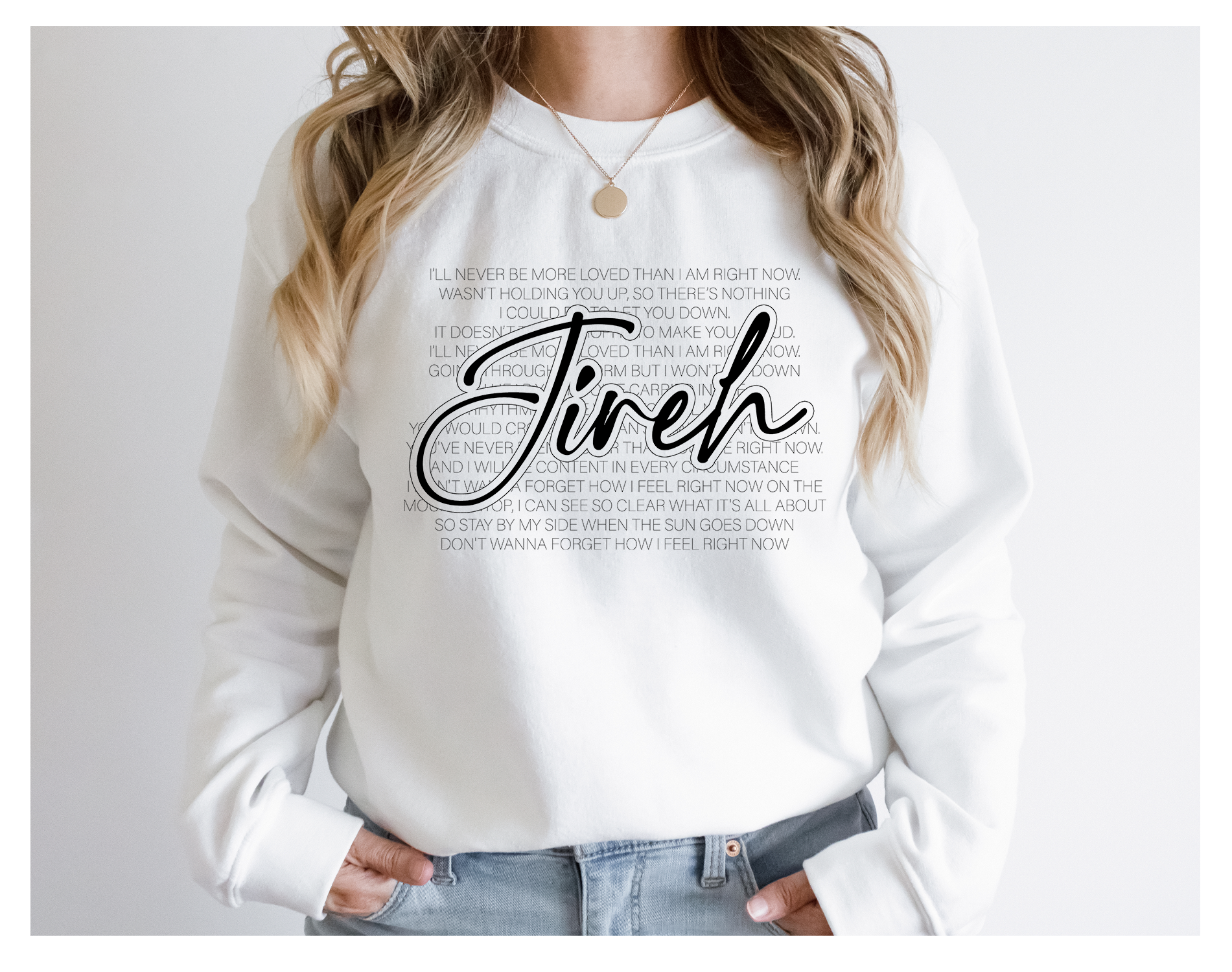 Cozy up in this Jehovah Jireh sweatshirt. A chic way to wear your faith and stay warm—ideal for fall layering and spiritual vibes.