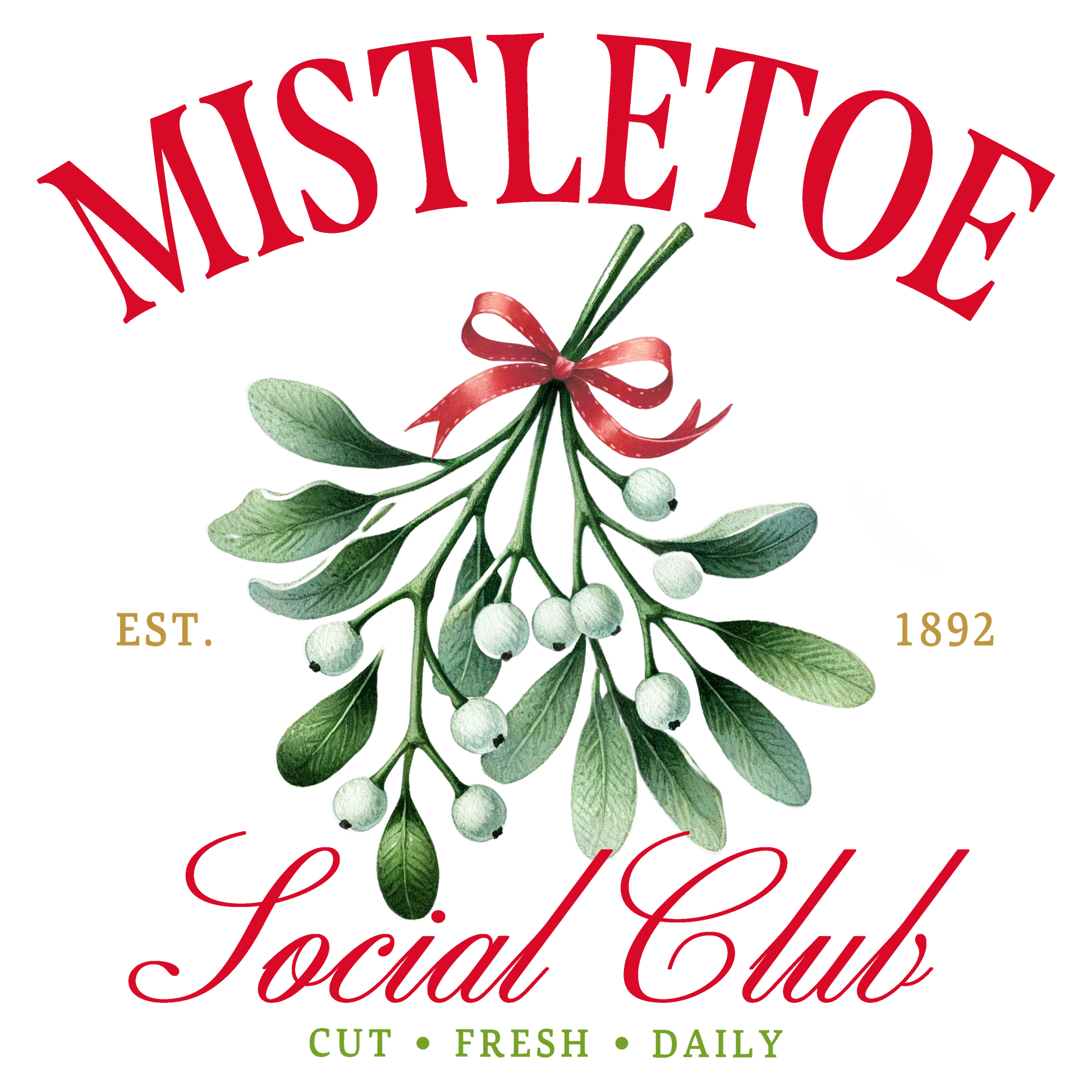 Get ready to sleigh the season with this charming Mistletoe Social Club DTF transfer! Featuring playful holiday vibes and cozy winter flair, this design is perfect for crafting custom tees, sweatshirts, or tote bags that spread cheer wherever you go. Ideal for holiday parties, gift-making, or just showing off your festive spirit. High-quality, vibrant, and easy to apply—this transfer brings the magic of the season to life!